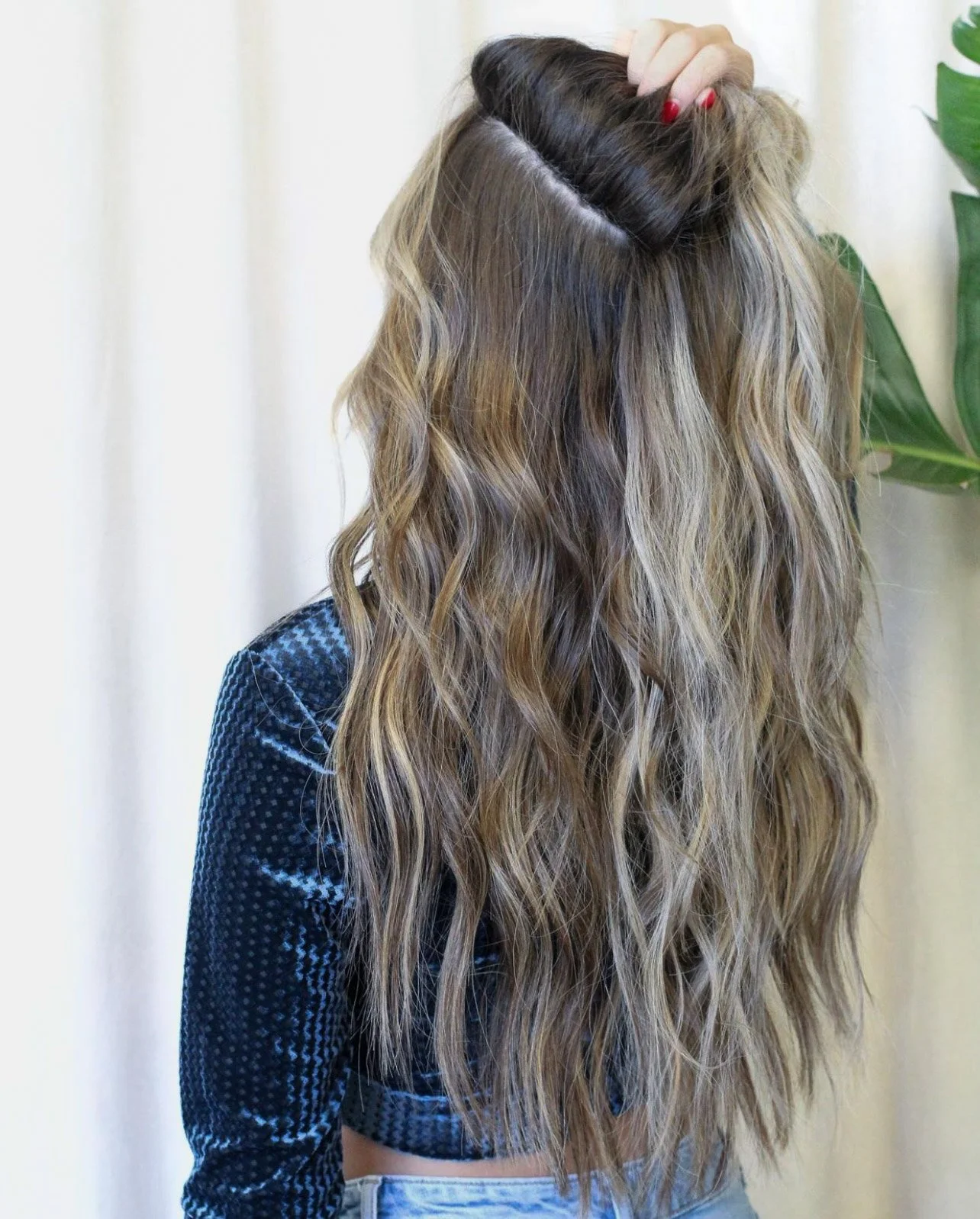 Here we are lifting up her hair to expose her hair extensions. This shows the flexibility, versatility, and ability to seamlessly blend with your natural hair.